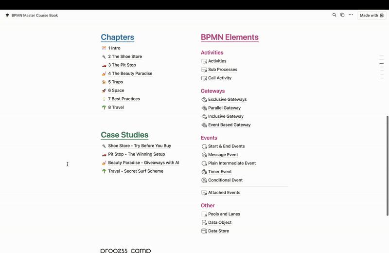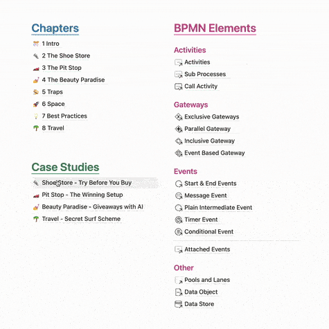 This isn’t just a summary — it’s a fully interactive, hands-on BPMN guidebook, built to work seamlessly with the BPMN Token Simulator.